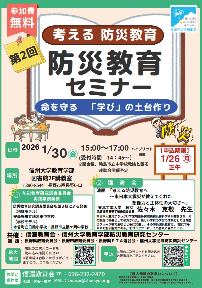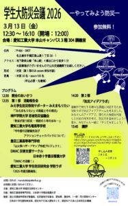2026年1月21日 / 最終更新日時 : 2026年1月21日 地域防災研究センター管理者 外部イベント 【1月30日】第2回防災教育セミナー開催 第2回防災教育セミナーが1月30日(金)に開催されます。詳細は以下をご覧ください。 Follow me! FacebookBlueskyCopy